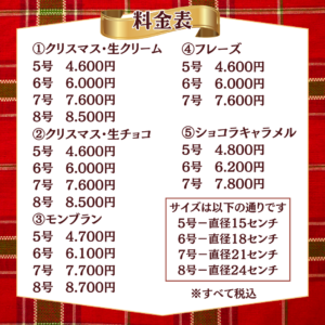 クリスマスケーキ全5種類をあらためてご紹介します。