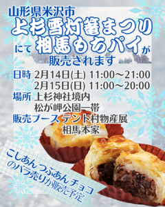 2月14日(土)、15日(日)に、山形県米沢市で行われる[上杉雪灯篭まつり]にて【相馬もちパイ】が販売されます。