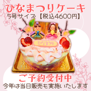 ひな祭りに向けて【ひなまつりケーキ/5号サイズ(税込4600円)】の予約開始🎎