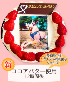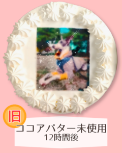 今まではプリントしたオブラートをそのままケーキに貼り付けていましたが、現在は透明で無味無臭なココアバター(チョコレートを作る時にできるバター)を塗ってからオブラートを貼り付けているため、長時間プリント面をキレイに保つことに成功!